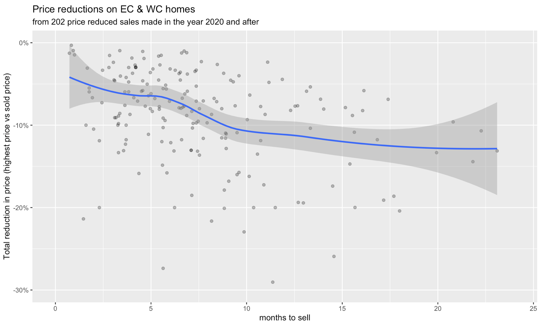 First of all, it is surprising to see 5-8 months to list and close a property sale. This does include the contract exchange period of 3-4 months, so perhaps the time to get an offer is around 2-4 months. According to a report by The Advisory group it takes 2 months to get an offer, depending on the state of the market. So it seems 2-4 months for an offer in EC/WC is representative of a somewhat bear market.